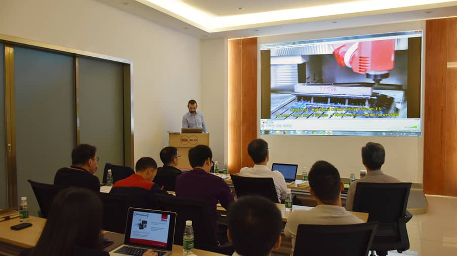 此次到場參加交流的MECOF高級區域主管詳細介紹了MECOF公司的發展理念、發展歷程、發展規模、企業文化,以及產品線的分布,技術實力等情況。意大利MECOF公司一直對中國市場都極為關注,此次與環球機械達成戰略合作,體現了MECOF公司對中國未來市場發展潛力的認可以及對中國市場的重視。