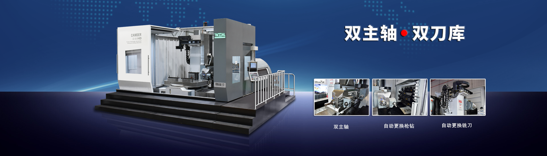 機床采用雙主軸、雙刀庫設計,配備銑削和槍鉆二個獨立刀庫,可實現(xiàn)全自動更換槍鉆和銑刀功能,可更換12支槍鉆,6支導向套。